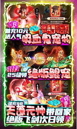 3.首充赠送热门高人气群攻宠物“吸血鬼”!98元还赠送传说宠物“天蓬元帅”、飞剑坐骑!!首充一次领3天,天天不同奖励内容!!
